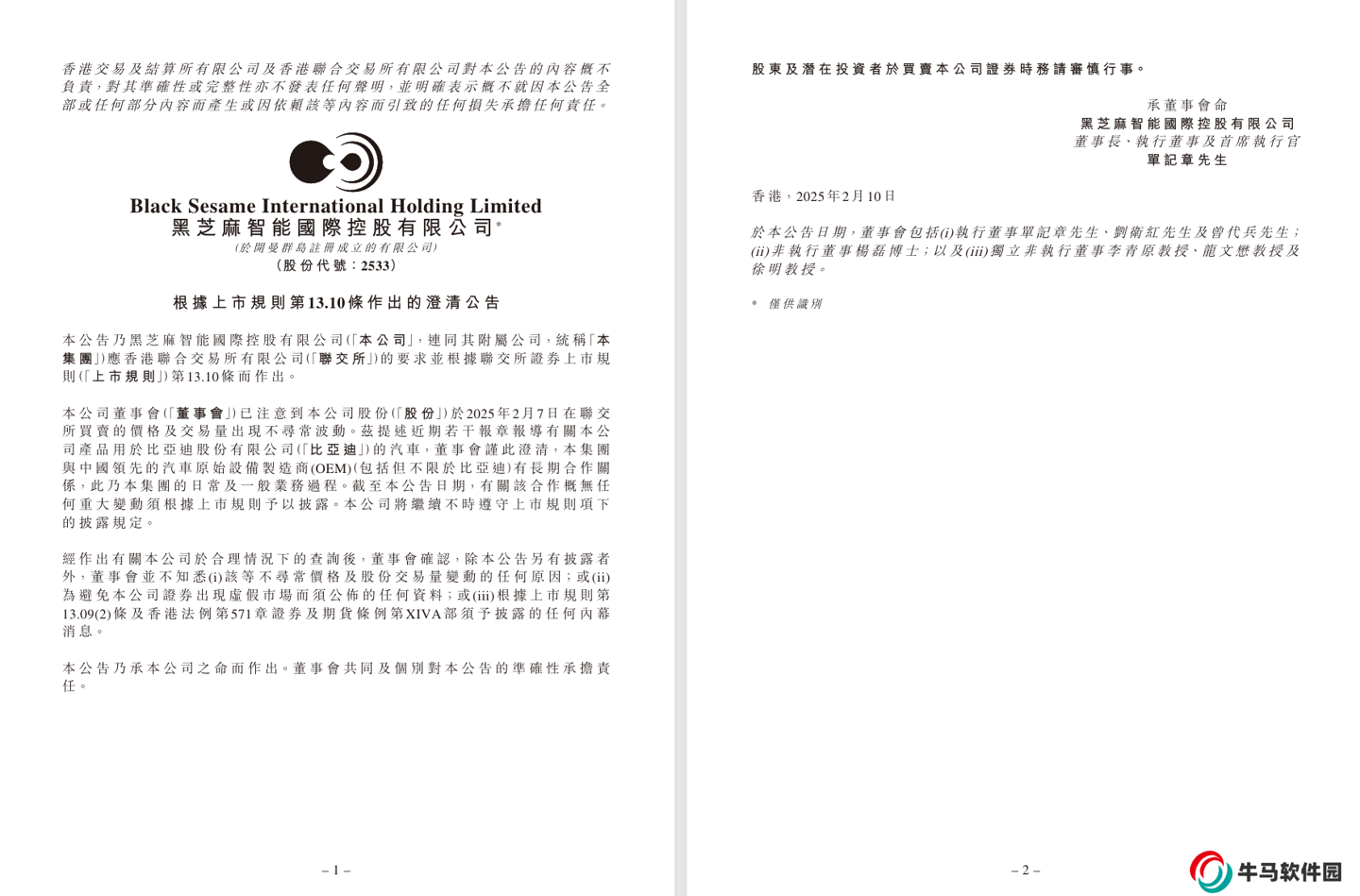 本站 2 月 10 日消息,黑芝麻智能在港交所公告稱,公司董事會已注意到公司股份于 2025 年 2 月 7 日在聯(lián)交所買賣的價格及交易量出現(xiàn)不尋常波動。