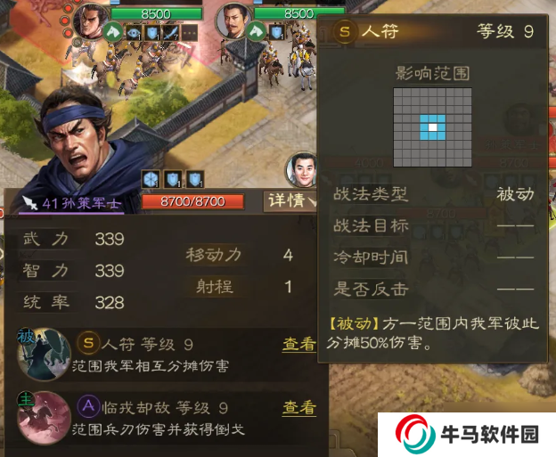 然后呂蒙開啟自帶戰(zhàn)法,百騎劫營直接切天符軍士。