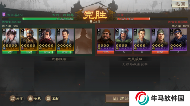 勝利條件是擊敗三個指定目標且于吉存活,完勝條件是所有百姓單位兵力皆>50%,百姓是敵對單位,要達成這個完勝條件,只要注意一下其實并不難。