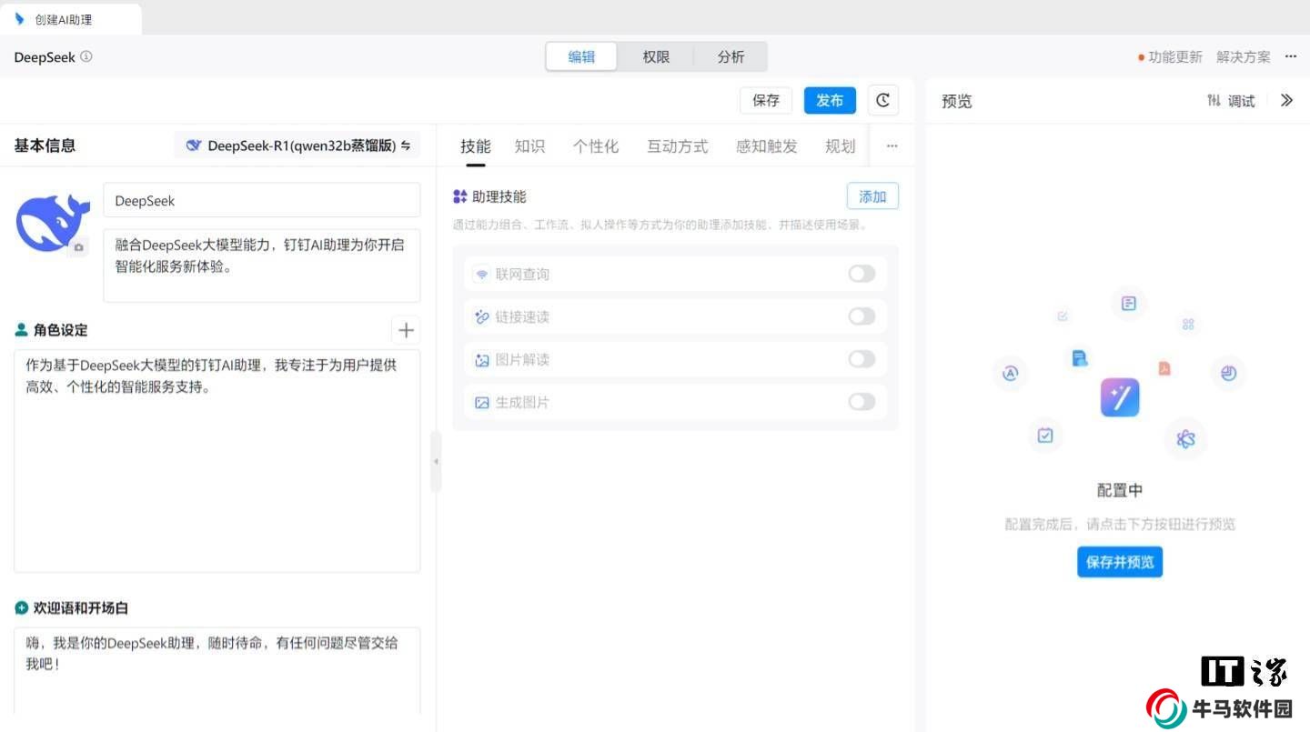 借助這一全新功能,用戶(hù)不僅能享受到DeepSeek系列模型帶來(lái)的深度思考和聯(lián)網(wǎng)查詢(xún)能力,還能通過(guò)釘釘?shù)痛a平臺(tái)宜搭,輕松生成Prompt并調(diào)用DeepSeek的各項(xiàng)功能。這一整合使得AI助理的應(yīng)用場(chǎng)景更加廣泛,無(wú)論是數(shù)據(jù)分析還是文本生成,都能得心應(yīng)手。