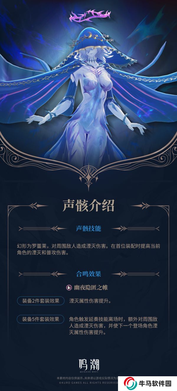幽夜隱匿之帷裝備2件套裝效果湮滅屬性傷害提升。裝備5件套裝效果角色觸發(fā)延奏技能離場(chǎng)時(shí),額外對(duì)周圍敵人造成湮滅傷害,并使下一個(gè)登場(chǎng)角色湮滅屬性傷害提升。