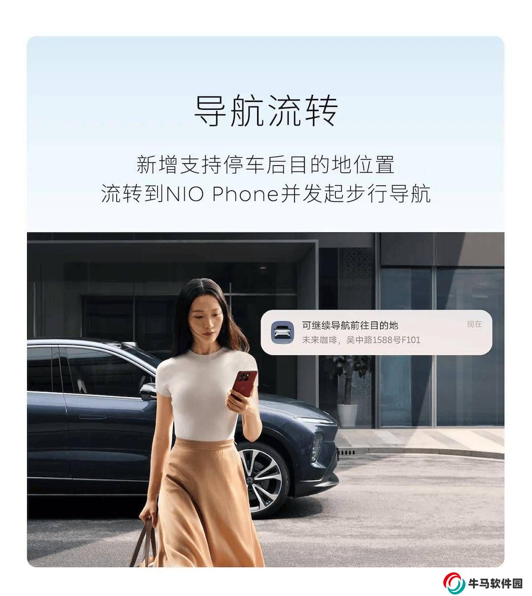 導(dǎo)航流轉(zhuǎn)功能也得到了進(jìn)一步的優(yōu)化。當(dāng)用戶停車后,目的地位置信息可以無(wú)縫流轉(zhuǎn)至NIO Phone 2,并自動(dòng)發(fā)起步行導(dǎo)航,為用戶提供從駕車到步行的全鏈條導(dǎo)航服務(wù)。