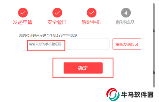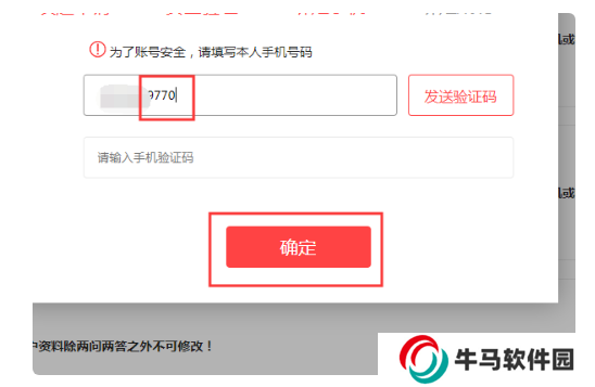 8、在出現(xiàn)的頁面中可以看到當(dāng)前綁定的手機(jī)尾號為4029,輸入驗(yàn)證碼以后點(diǎn)擊確定按鈕