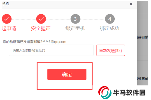 11、在出現(xiàn)的界面中登錄之前注冊的郵箱輸入驗(yàn)證碼以后點(diǎn)擊確定按鈕。