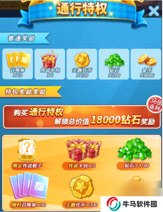 3、賽季:達(dá)到3500杯總計(jì)可以獲取380鉆石,如果是氪金玩家解鎖特權(quán)能夠獲取更多鉆石,寶箱,召喚券等獎(jiǎng)勵(lì)。