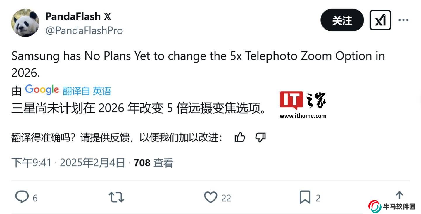 近期,智能手機(jī)攝影領(lǐng)域的又一重磅消息傳來。據(jù)可靠消息源@PandaFlashPro于2月4日的報(bào)道,三星即將推出的旗艦機(jī)型Galaxy S26 Ultra,在長焦鏡頭方面將保持與前代相同的5倍光學(xué)變焦能力。此前,業(yè)界曾有傳言稱,這款新機(jī)可能會(huì)搭載具備2億像素的長焦傳感器,且光學(xué)格式達(dá)到1/1.5英寸。