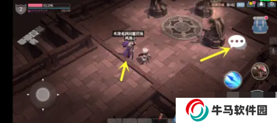 然后繼續(xù)闖關(guān),來到第三層可以看到一個(gè)NPC,點(diǎn)擊右側(cè)和他對話。