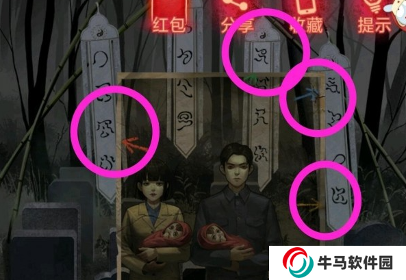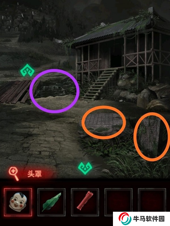 根據(jù)墓碑線索與書本提示排列靈位,順序是:丁癸辛乙戊。然后會獲得一個撥浪鼓,拿來給小孩換取道具,將得到的道具交給村口老奶奶。