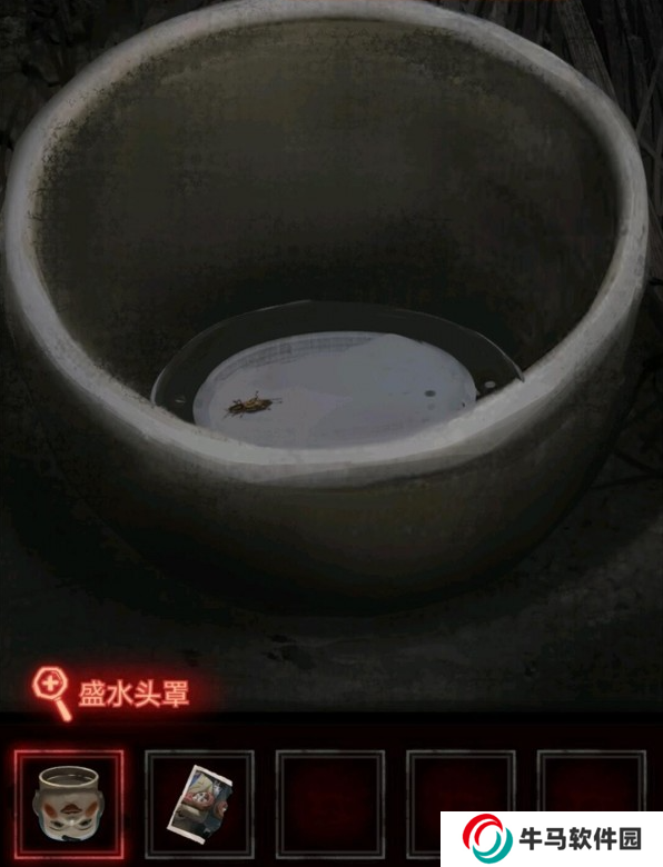 裝水的頭套倒入缸內(nèi)得到道具。