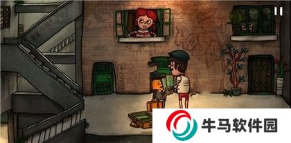 8.往回跑,跑回小雞廣場,往右走,上樓梯看見小情侶吵架,點箱子把明信片拼圖拼好順走(別問怎么拼),下面有個小提示,記下來(養(yǎng)成解密好習慣,看見像提示的就記下來)