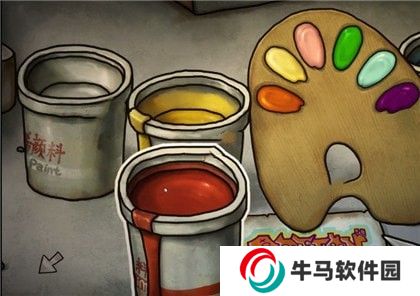 5.出了包子鋪下面有個樓梯,下去,把刷子給那個色弱還刷墻的憨憨,幫他調(diào)色(夏姬八亂調(diào)就行,你調(diào)出來啥色都不會按照圖紙上畫,別忘了這家伙是色弱,忽悠就行了,你調(diào)對了他都給你畫錯)