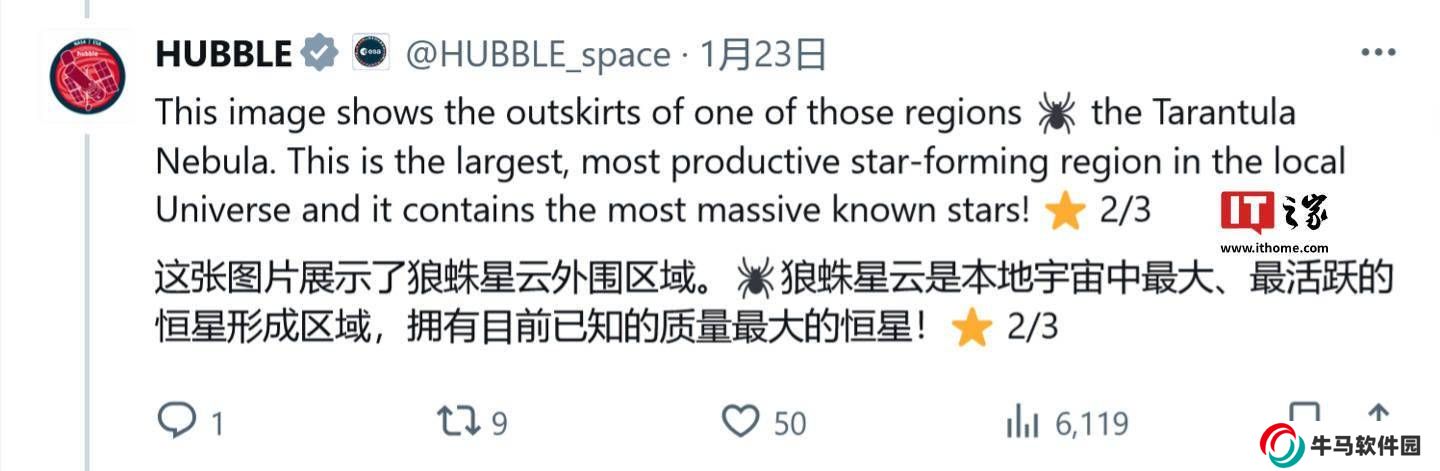 在浩瀚的宇宙探索之旅中,哈勃太空望遠鏡無疑是人類最忠實的“眼睛”。自其于三十多年前發(fā)射升空以來,這臺先進的觀測設備持續(xù)不斷地向地球傳回令人嘆為觀止的宇宙圖像。近日,官方X賬號分享了一張來自大麥哲倫星云中蜘蛛星云(天文學上稱為30 Doradus)的壯觀照片,再次展示了哈勃的卓越能力。