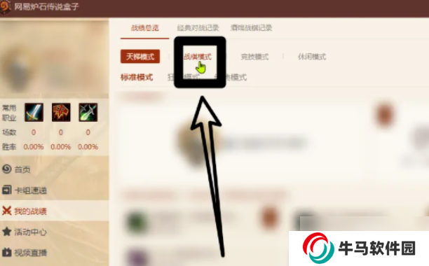 第二步、點擊我的戰(zhàn)績,在這里可以查看匹配對戰(zhàn)和酒館戰(zhàn)棋的戰(zhàn)績。