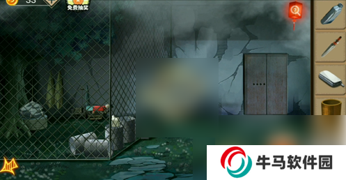 把木牌放在斷橋上,就能到另一個場景,獲取一個手機,地上有水桶、汽油、齒輪、把手、水管、傳送帶在石頭上,要用匕首劃開,然后啟動發(fā)動機,在水井上獲取徽章和火柴