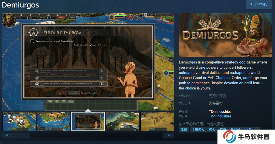 競(jìng)爭(zhēng)策略神祇游戲《Demiurgos》已登陸Steam平臺(tái),雖然具體發(fā)售日期尚未揭曉,但已引起廣泛關(guān)注。遺憾的是,目前該游戲尚未推出中文版,不過(guò)感興趣的玩家仍可訪(fǎng)問(wèn)其Steam商店頁(yè)面,一探究竟。