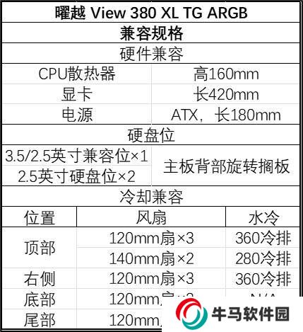 從規(guī)格上來(lái)看,View 380 XL TG ARGB系列機(jī)箱的三維尺寸為288×469×471mm,體積達(dá)到了63.62L,足以容納大型硬件。機(jī)箱配備了8條PCIe擴(kuò)展槽,完美支持ATX及以下規(guī)格的主板,同時(shí)兼容背插款式,為用戶提供了極大的靈活性。機(jī)箱的前方和左側(cè)均采用了4mm厚的鋼化玻璃面板,不僅美觀大方,還提供了良好的透視效果。
