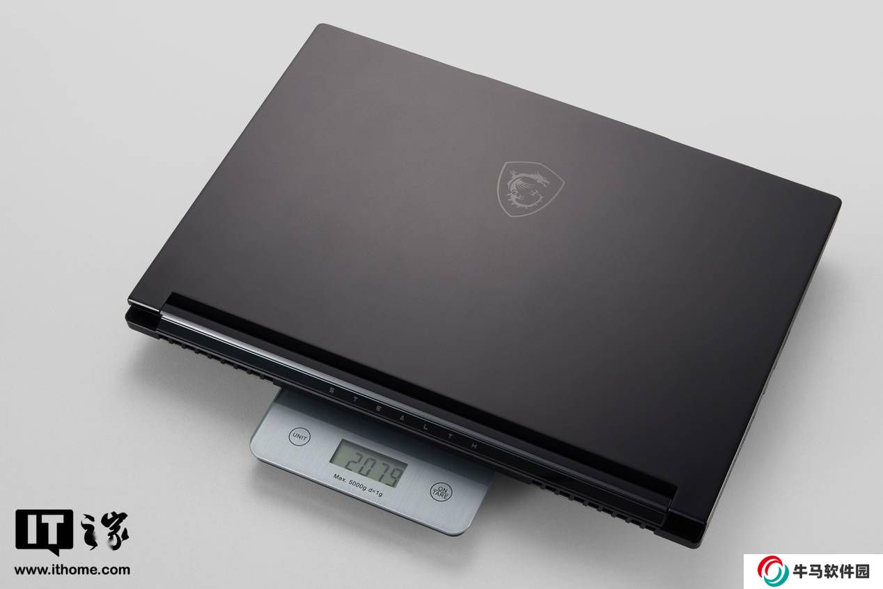 微星絕影16 AI+銳龍版延續(xù)了品牌一貫的硬朗風(fēng)格,A面采用純黑色金屬材質(zhì),手感細(xì)膩但稍易沾指紋。中央位置的龍盾Logo采用啞光黑絲印工藝,低調(diào)而精致。機(jī)身尺寸為350*260*(19.9-21.8mm),重量實(shí)測(cè)為2.08kg,比官方標(biāo)稱的2.1kg還要輕,便攜性出色。