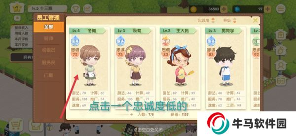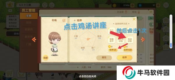 點擊一個忠誠度低的員工,點擊培養(yǎng),點擊雞湯講座,然后點擊喂養(yǎng)一次,點擊確認即可。