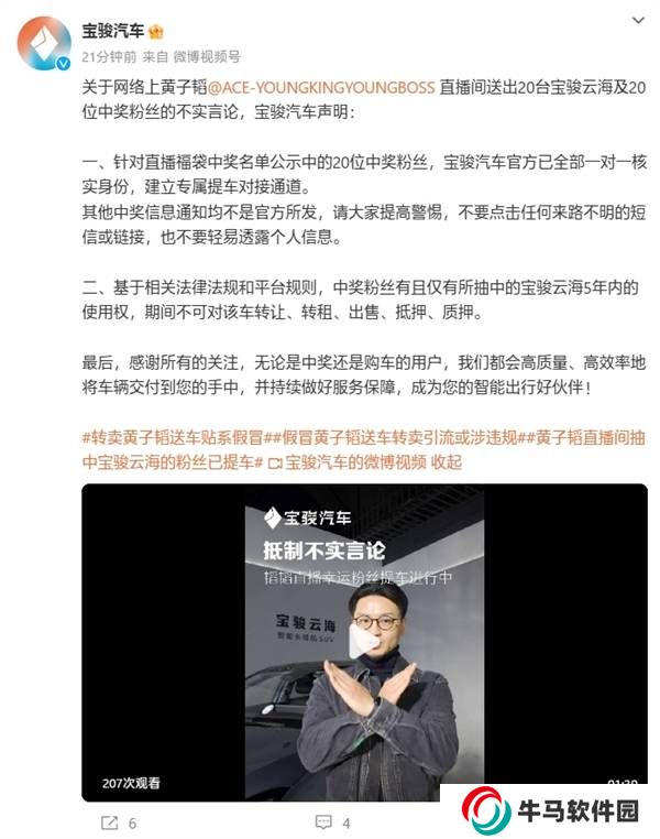 聲明還明確了中獎粉絲的權(quán)益。根據(jù)相關(guān)法律法規(guī)和平臺規(guī)定,中獎?wù)邇H享有寶駿云海5年的使用權(quán),期間不得對該車進(jìn)行轉(zhuǎn)讓、轉(zhuǎn)租、出售、抵押或質(zhì)押等操作。