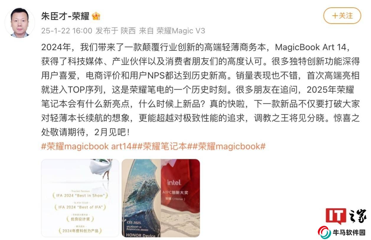 榮耀筆記本新品即將于本月震撼登場(chǎng),這一消息由榮耀產(chǎn)品線總經(jīng)理朱臣才在2月6日正式宣布。隨后,他又在社交媒體上透露了更多關(guān)于這款新品的細(xì)節(jié),引發(fā)了廣大消費(fèi)者的熱烈關(guān)注。