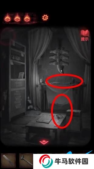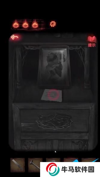 2、接著看到梳妝臺(tái),左手邊的柜子需要解鎖,解鎖步驟:嫁衣,樹,月亮,菩薩。