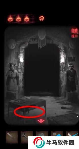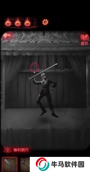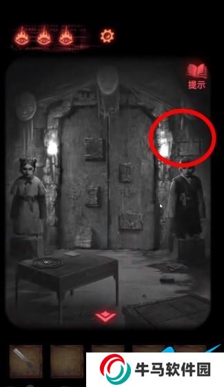 19、回到木偶處,用砍刀把線弄斷,回到門口。