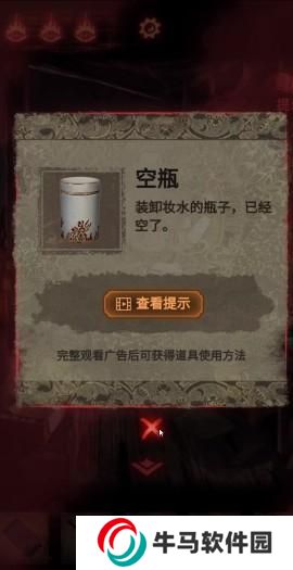 7、進(jìn)入后臺(tái)拿到空瓶,打開(kāi)獲得衣架,點(diǎn)擊衣服出現(xiàn)一個(gè)高能,拿到戲服。
