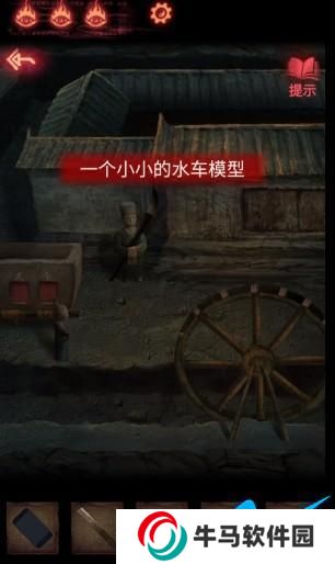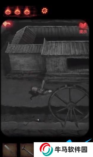 16、把面具放到砍刀下面,在水車那里用針扎他。