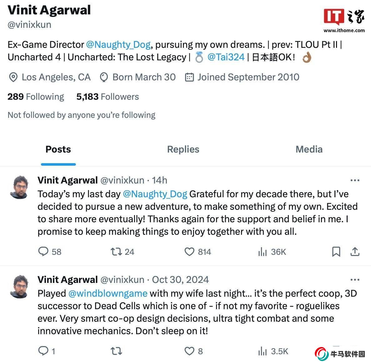 近日,知名游戲開發(fā)公司頑皮狗遭遇了一則人事變動,其游戲總監(jiān)Vinit Agarwal在社交媒體平臺上正式宣告了自己的離職決定。這一消息迅速引起了業(yè)界的廣泛關注。