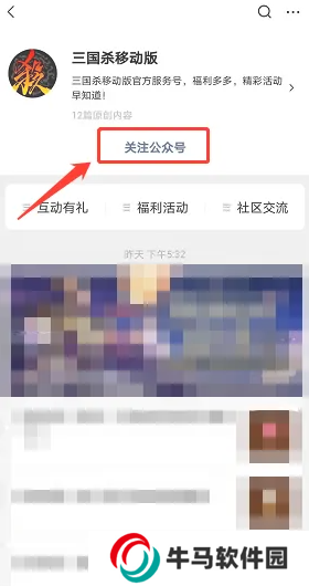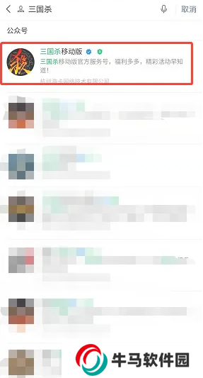 通過(guò)搜索功能找到三國(guó)殺官方公眾號(hào)。