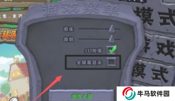 打開植物大戰(zhàn)僵尸游戲,然后點擊“選項”按鈕,然后勾選【全屏幕顯示】選項即可。