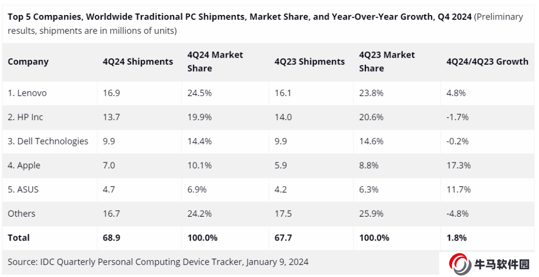 全球PC出貨量三年首增,戴爾下滑,聯(lián)想惠普蘋果華碩齊上漲