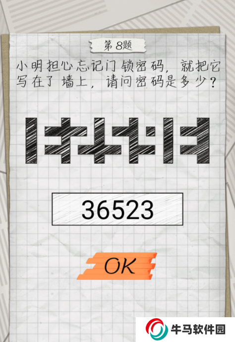 最囧游戲4第8關(guān)怎么過(guò),題目:小明擔(dān)心忘記門鎖密碼,就把它寫在了墻上,請(qǐng)問密碼是多少?正確操作:將手機(jī)倒過(guò)來(lái)就能看到密碼,密碼是:36523。以上就是為大家?guī)?lái)的最囧游戲4第8關(guān)攻略。
