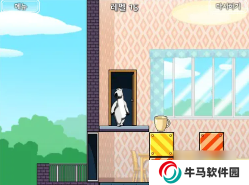 終于來到了15關,這關剛開始玩的時候怎么都過不去,主要是不得要領,不過最后還是過了,一起來看一下!進入關卡,我們先跳到中間,盡可能的不要碰碎杯子然后跳到最右邊將箱子推過去,這里注意推的位置要稍微靠住椅