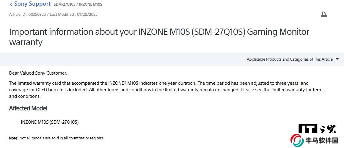 索尼InZone顯示器保修升級(jí),M10S享OLED燒屏保障!