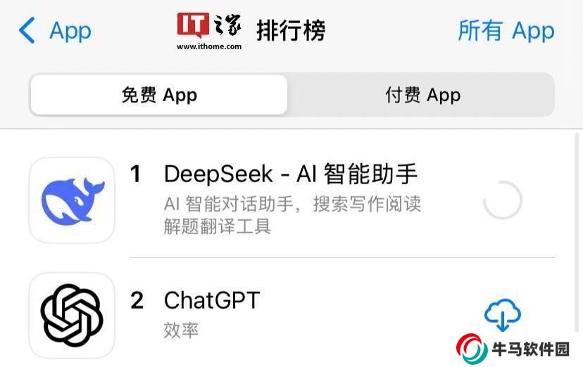DeepSeek AI助手超越ChatGPT,登頂蘋(píng)果App Store免費(fèi)榜!