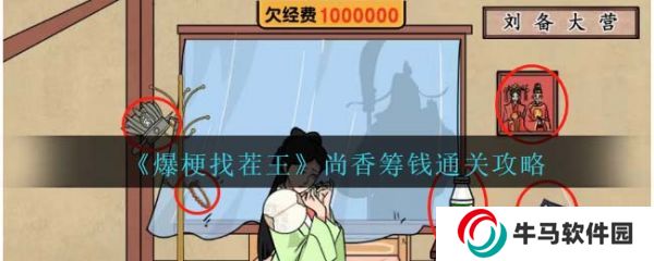 爆梗找茬王是非?;鸨囊嬷切蓍e小游戲,今天給大家?guī)砹恕侗U也缤酢飞邢慊I錢通關(guān)攻略,尚香籌錢這一關(guān)需要找出值錢的東西給孔明籌集經(jīng)費(fèi),把令牌給關(guān)羽可以得到寶箱,水管里漏出好多石油,木頭燒一燒里面有黃金