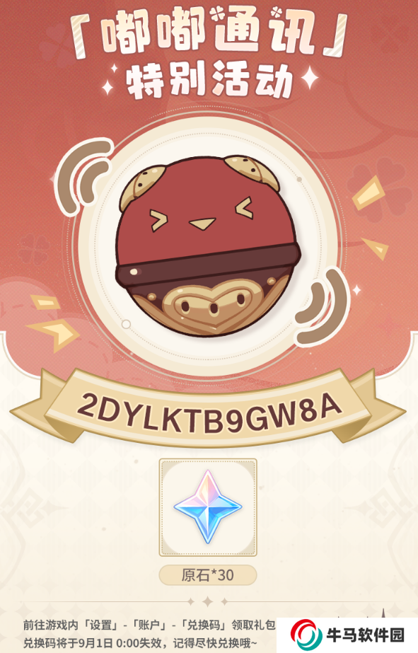 3-兌換碼將于9月1日 0:00 失效,記得盡快兌換哦~