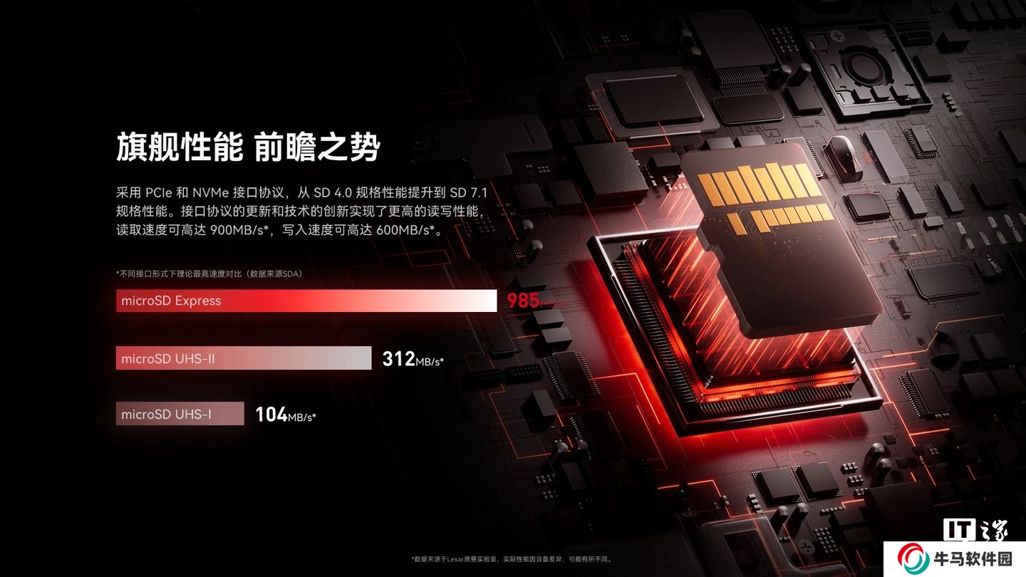 本站從雷克沙官方網(wǎng)站了解到,Lexar PLAY PRO 存儲卡為 microSD Express 標準,采用了 PCIe 3.0 和 NVMe 1.3 接口,因此與常規(guī)的 TF 儲存卡在接口外觀上并不相同。在支持的設備上,Lexar PLAY PRO 存儲卡的峰值順序讀取速度可達 985MB/s,峰值順序?qū)懭胨俣瓤蛇_ 600MB/s。