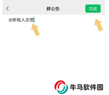 3、點擊打開“群公告”,輸入需要“@”所有人法會的內(nèi)容,點擊完成即可。