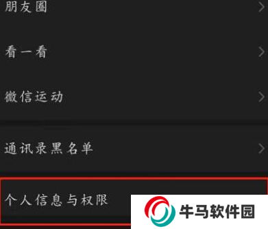 3、在隱私中找到并進(jìn)入“個(gè)人信息與權(quán)限”
