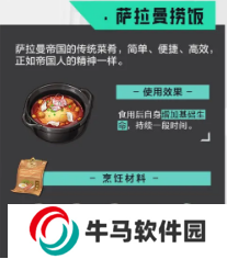 使用效果:食用后使自身武器變?yōu)榛饘傩?,所有無(wú)屬性傷害變?yōu)榛饘傩詡Γ掷m(xù)一段時(shí)間。