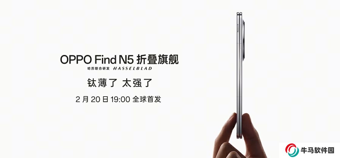 本站 2 月 10 日消息,OPPO 今日更新了微博宣傳圖:OPPO Find N5 折疊旗艦將于 2 月 20 日 19 時全球首發(fā),該機的 Slogan 為“鈦薄了,太強了”。