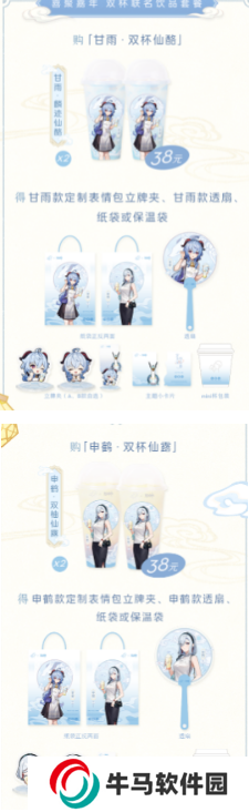 購(gòu)「甘雨·雙杯仙酪」,得甘雨款定制表情包立牌夾、甘雨款透扇、紙袋或保溫袋;
