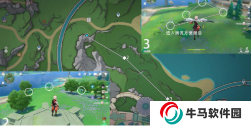傳送露景泉錨點,往地圖的西南方向走,按圖中指引激活順序激活。