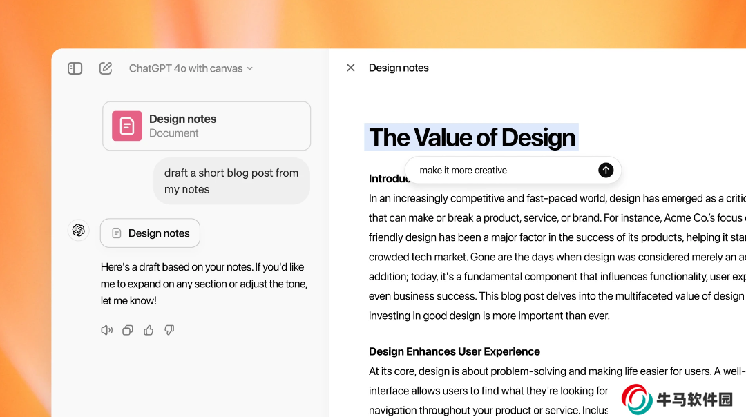 據(jù)介紹,Canvas 是 ChatGPT 中的一項(xiàng)寫作、編碼工具,在啟用相關(guān)功能后,用戶可以在窗口右側(cè)文檔中輸入各種文本內(nèi)容,同時(shí)在窗口左側(cè)利用OpenAI提供的模型調(diào)整擴(kuò)寫縮寫文本長度,或聯(lián)想上下文。