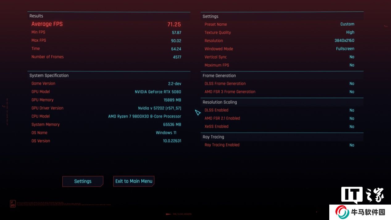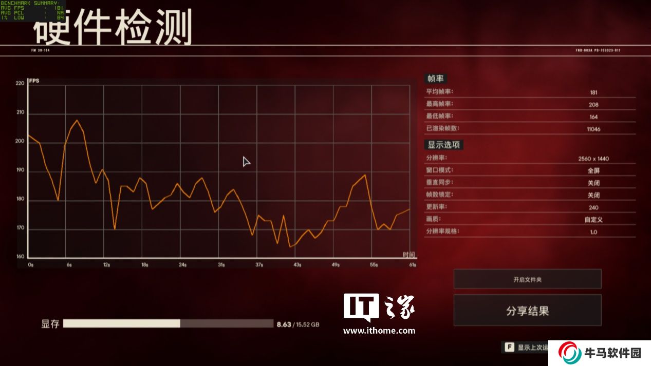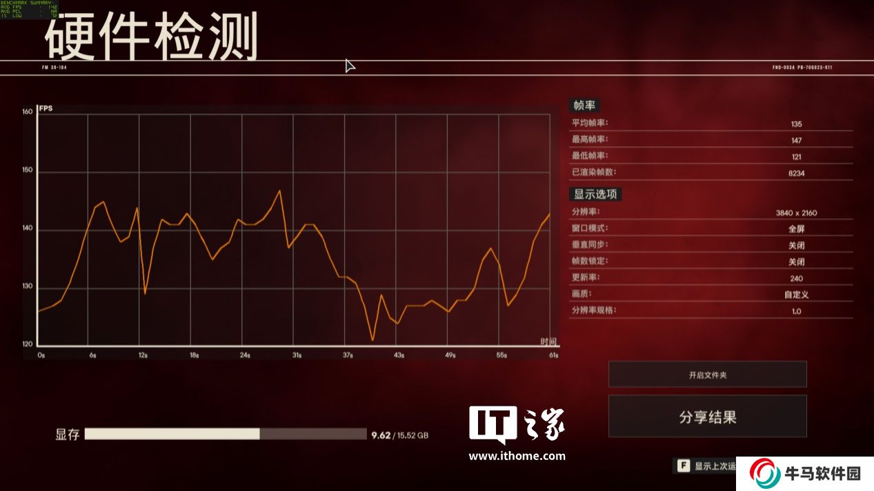 在 4K 分辨率 + 最高畫質下,游戲平均幀數(shù)為 152 幀;