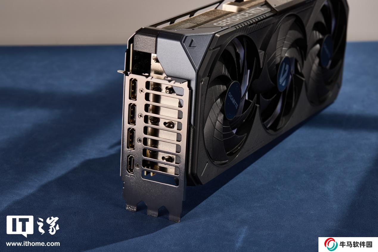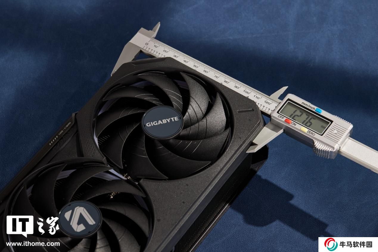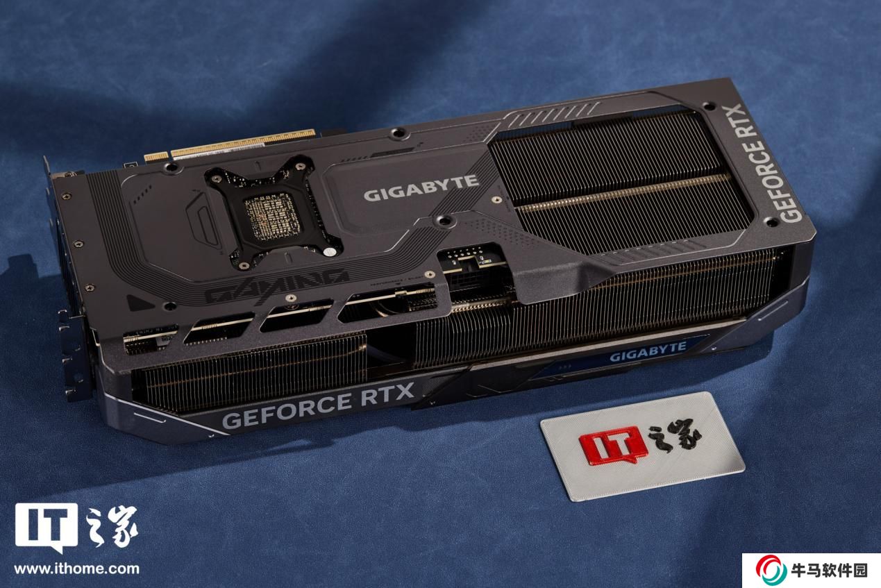 體積方面經(jīng)過本站實測,技嘉魔鷹 RTX 5080 顯卡的三圍分別是 330*128*69mm(不含金手指與擋片),裸卡重量約 1.84kg。