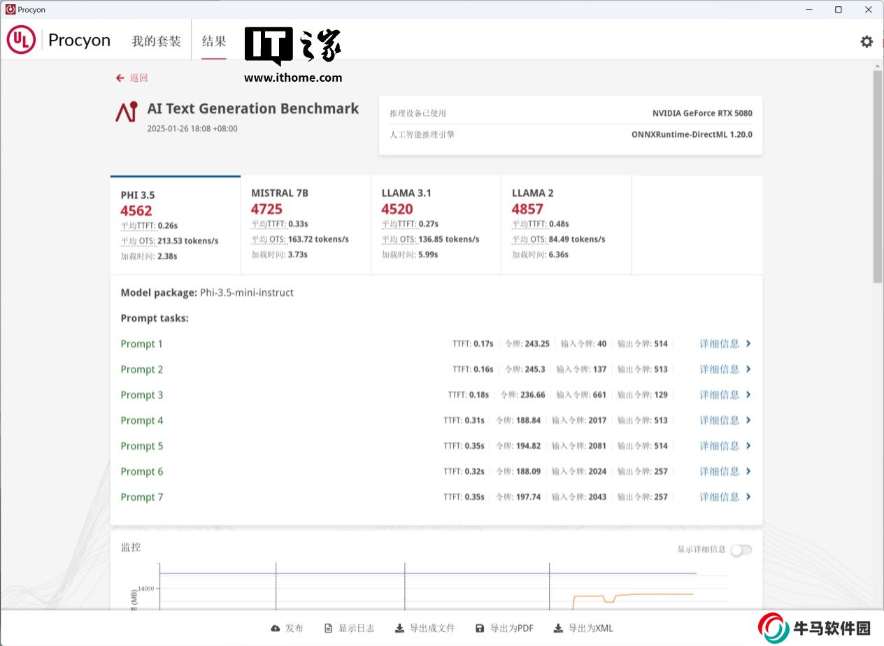 最后是考驗 AI 性能的大語言模型測試,面對 13B 參數(shù)量的 LLAMA 2 模型平均 OTS 也有著 84.49tokens / s,相比于公版 RTX 5080 的 83.48tokens / s 有所提升,表現(xiàn)出色。