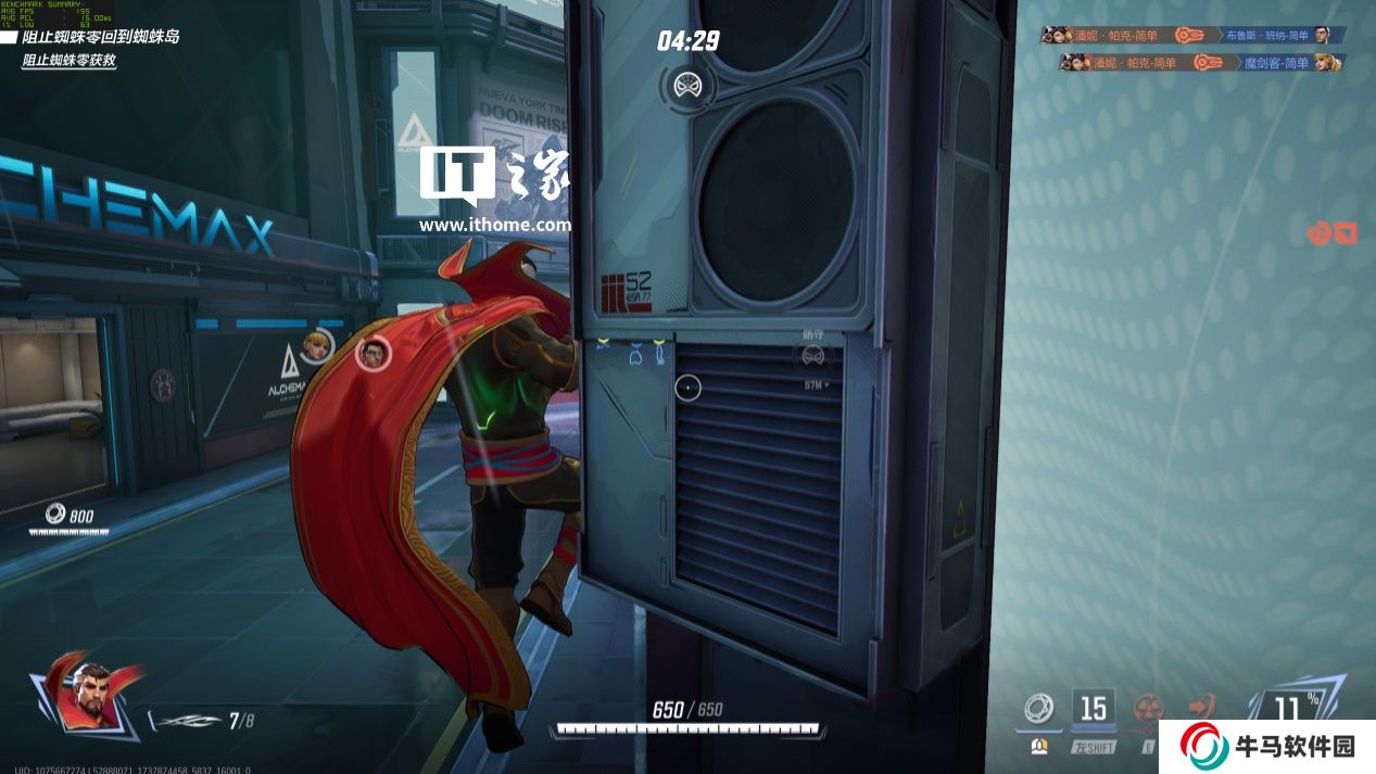 我們以《漫威爭鋒》為例,在 4K 分辨率 + 高畫質 + 關閉 DLSS 情況下,游戲平均幀數(shù) 155 幀,1% Low 幀 63 幀,游戲平均延遲 15ms;